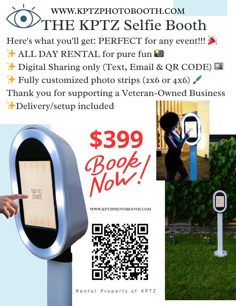 KPTZ Photo Booth is a veteran-owned/women-owned, community-driven business based in Bay Park, San Diego. Every moment should be captured and cherished, so we offer premium photo-booth experiences for weddings, corporate events, brand activations, and celebrations.